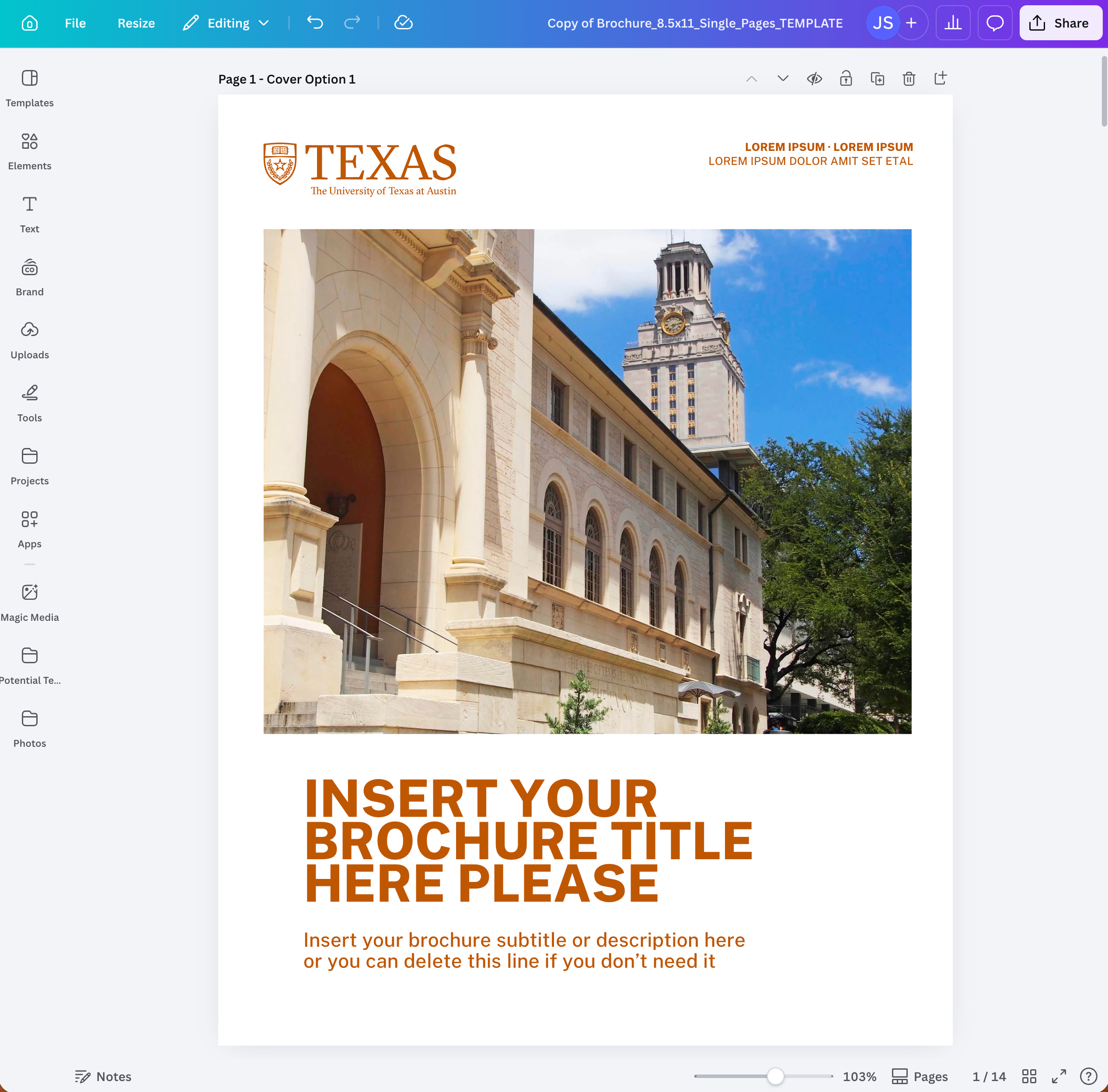 Canva for Campus is the University’s enterprise version of Canva, available to faculty and staff. It provides access to UT-approved brand assets and templates, making it easier to create professional, on-brand digital and print materials.