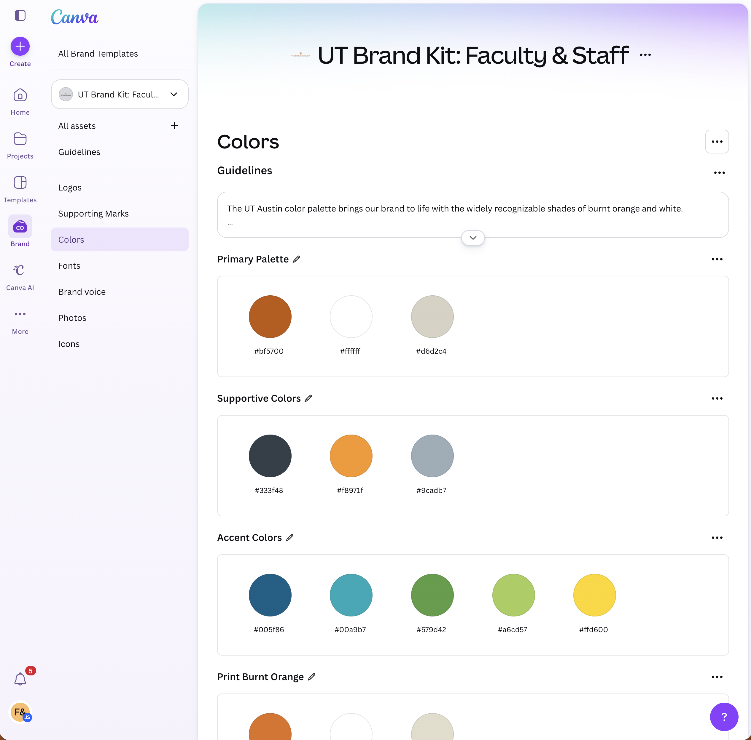 - Click Brand in the left navigation to view the UT Brand Kit.